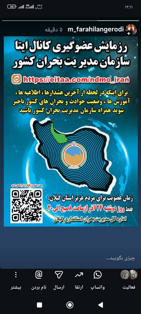 تمدید مهلت عضویت مردم گیلان در کانال رسمی هشدارهای اضطراری